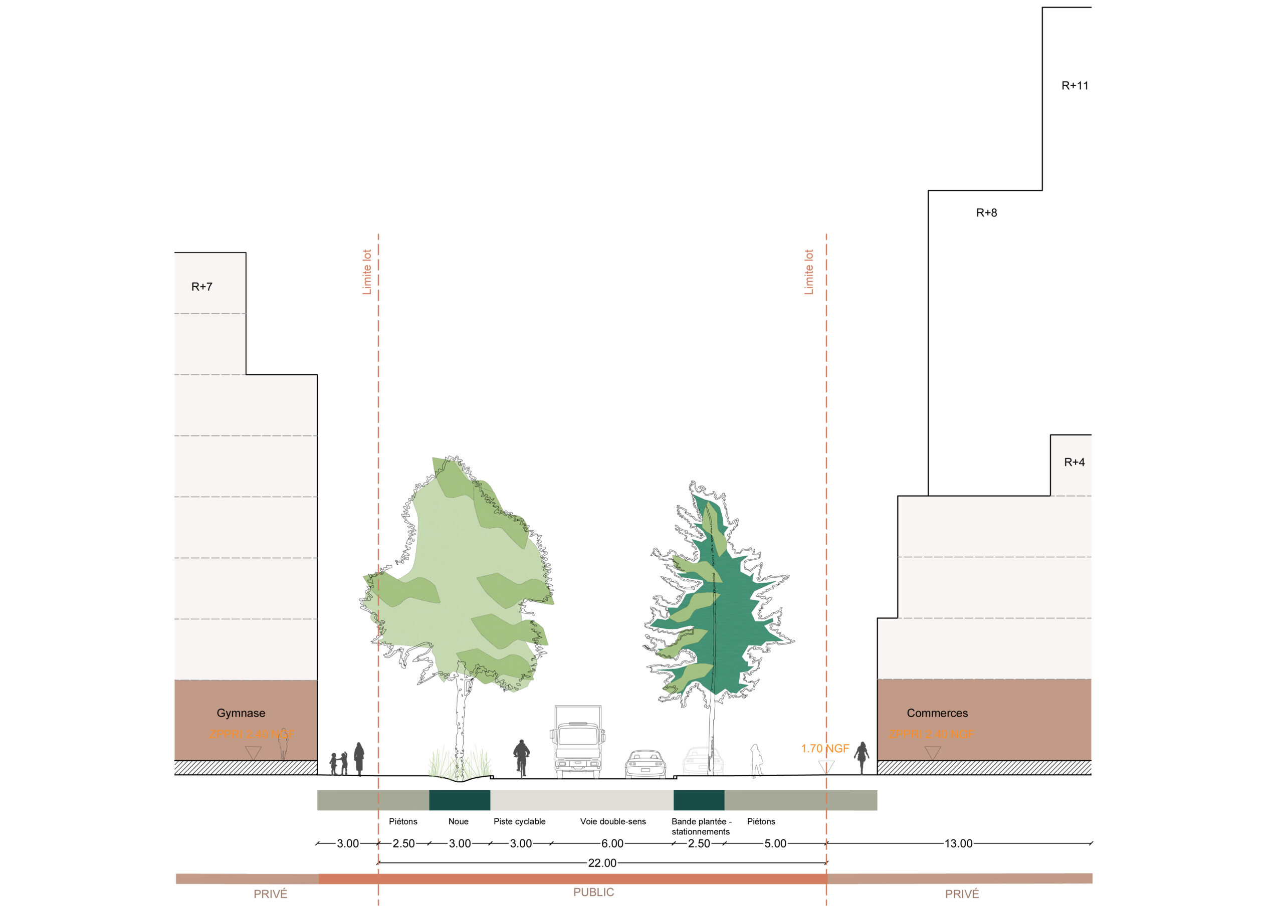 - Surface / 40ha, 200 000m2 SDP dont 165 000m2 de logements/bureaux, 30 000m2 d’activités et 5 000m2 d’équipements publics
